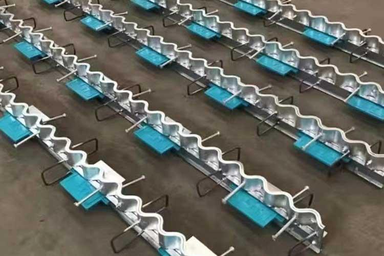 B型鎧裝縫由兩根10*40mm冷拉扁鋼,錨固栓釘,傳力桿/板,傳力桿/板伸縮套,擋料板,易斷塑料螺栓等組成。